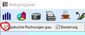 Je nach Vorgaben können Belegungen nach Druck bzw. nach Bezahlung in grau dargestellt werden. Falls dieses nicht mehr der Fall ist, haben Sie das Häkchen herausgenommen.