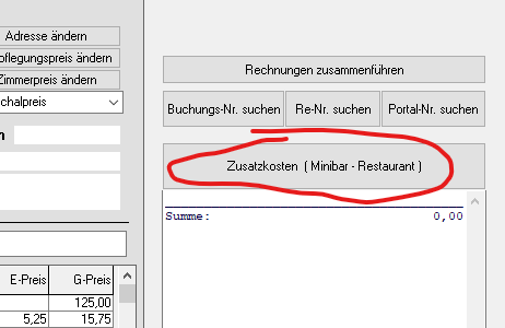 Eine zweite Rechnung kann über Zusatzkosten / Minibar ausgestellt werden: